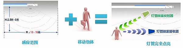 在樓道、車庫等地方的感應燈往往反應不夠靈敏,給人們造成不便。LED\u00A0T8燈管亮易燈感應采用微波感應控制的方式,感應更靈敏,感應范圍更寬廣。當有物體進入感應范圍并移動時,燈管發(fā)射微波信號到物體產(chǎn)生發(fā)射,由于“多普勒效應”反射回的微波信號頻率發(fā)生改變,當燈管微波接收器接收到改變后的微波信號,自動輸出高電平頻,燈管便進入全亮模式。