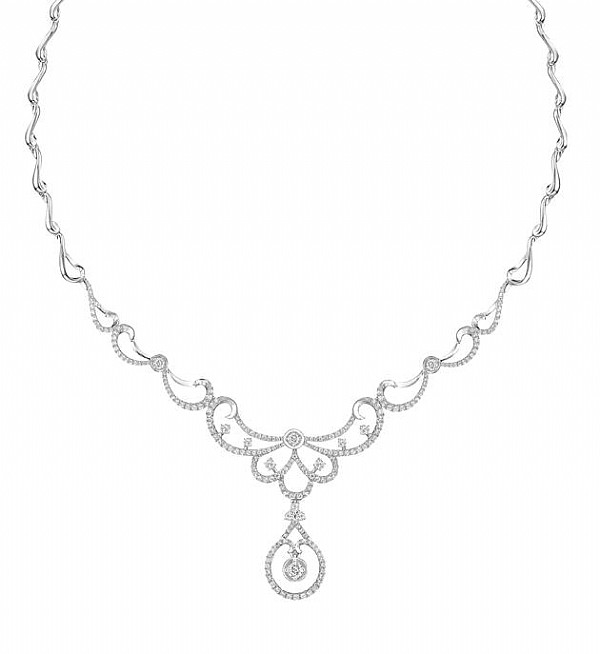 以婚紗上層層浪漫的蕾絲為設(shè)計(jì)意念,打造優(yōu)雅的通花圖案,柔美的弧線上鑲有閃爍的鉆石,映襯新娘白皙的肌膚和紅潤(rùn)的臉頰,煥發(fā)迷人的風(fēng)采。兩款鉆石項(xiàng)鏈的掛墜均可靈活地拆下獨(dú)立佩戴,幻化出另一款不同效果的鉆石項(xiàng)鏈,或高雅瑰麗,或簡(jiǎn)潔精巧,滿足不同場(chǎng)合的搭配需要。