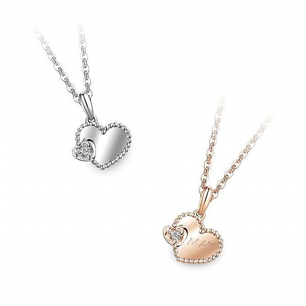 即將步入人生另一個(gè)重要的階段,好姐妹們堅(jiān)定的目光讓新娘更感幸福。一眾的好姐妹們?yōu)榛槎Y而奔走張羅,一直在身旁默默支持,在大喜之日不妨準(zhǔn)備一份窩心的小禮物來表達(dá)謝意與祝福。心形鉆石掛墜設(shè)紅色及白色以供選擇,圓潤(rùn)的小珠加強(qiáng)質(zhì)感,另一顆心則綴有閃亮的鉆石,兩顆心緊緊相連,更可于心形內(nèi)鐫刻個(gè)人化的字詞,記錄閨蜜之間深厚的情誼,讓摯友深深感受到友情的珍貴!