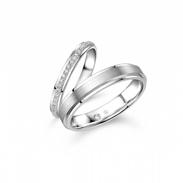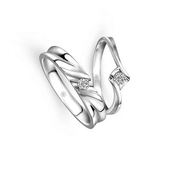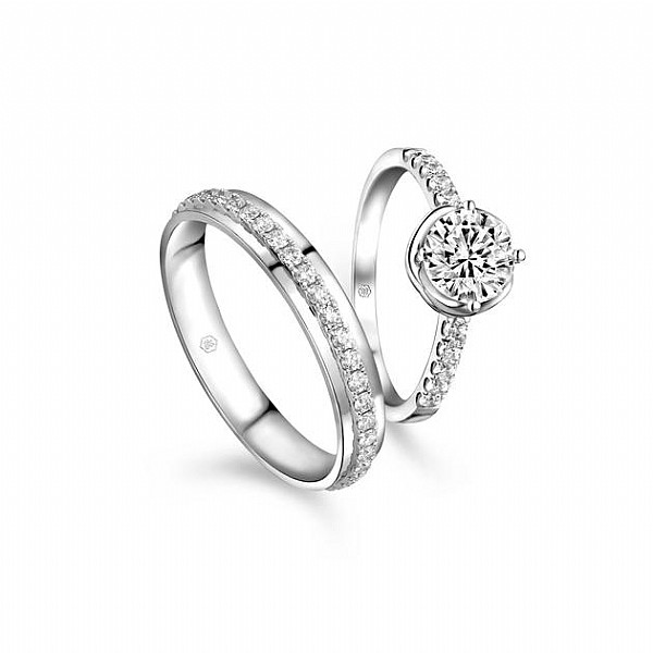 18K金(白色)鉆石訂婚及對(duì)裝戒指