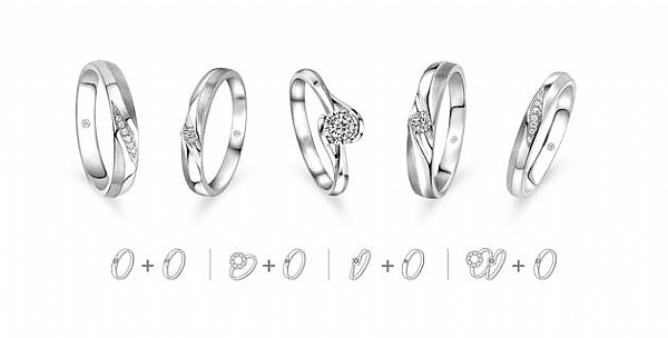 六福珠寶推出全新婚嫁系列,以‘愛,伴你一生。因?yàn)閻酆苊馈癁橹黝},將多款匠心獨(dú)運(yùn)的珠寶鉆飾呈獻(xiàn)給終成眷屬的有情人,更可自由并搭對(duì)裝戒指,展現(xiàn)出專屬二人的風(fēng)格。以18K金及閃爍的鉆飾見證生命中值得紀(jì)念的重要時(shí)刻,讓璀璨的光芒照亮幸福美滿的婚姻旅程。