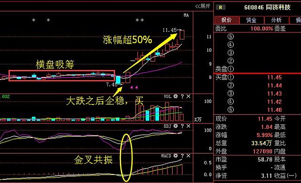 同濟(jì)科技今天又收到了很多感謝留言,其實(shí)抓住這樣的牛股,如果你不淡定了,說(shuō)明你關(guān)注本人Q:1578217367 \u00A0微信 gpam888太晚了,這支股票同樣的思路,股價(jià)橫盤之后回踩,大跌之后出現(xiàn)企穩(wěn)十字星,資金流入,金叉共振,果斷在專欄講解,截止目前漲幅超過(guò)50%,這樣的牛股你抓住了沒?