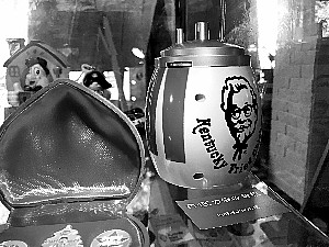 ▲肯德基櫥窗內(nèi)保存的1997年推出的“FM壓力鍋收音機(jī)”玩具。