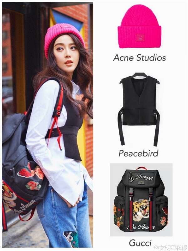 范爺在今年的潮流街拍中,也同樣選擇了一件peacebird的外搭小毛衣。