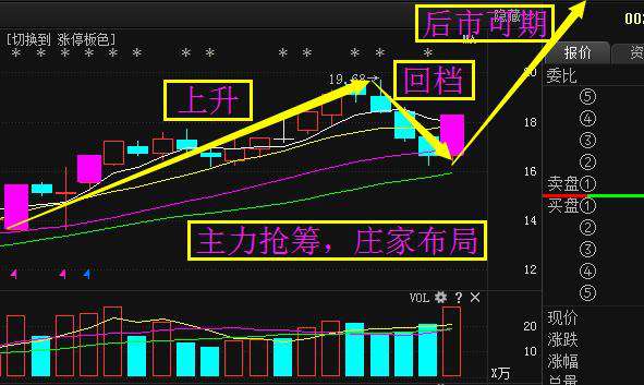 5、第二天,股價(jià)必須高開高走。若是低開也必須迅速向上拉升,不可在低位滯留時(shí)間過長(zhǎng)。