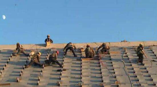 據(jù)了解,由2762塊仿夯土混凝土藝術(shù)掛板構(gòu)成昭君博物館整個(gè)外立面,單個(gè)掛板重量達(dá)2噸,且外立面為傾斜面、折面造型,安裝測(cè)量定位難度極大,在安裝時(shí)工人只能采用攀巖及雙膝跪地的方式,正常工期200天,項(xiàng)目團(tuán)隊(duì)僅用不到100天時(shí)間全部完工,創(chuàng)造國(guó)內(nèi)混凝土掛板幕墻安裝最快速度。同時(shí),項(xiàng)目在國(guó)內(nèi)首次將直立鎖邊系統(tǒng)應(yīng)用在了外幕墻體系,專業(yè)性極強(qiáng),保證了斜幕墻的施工質(zhì)量。項(xiàng)目部發(fā)揚(yáng)先鋒精神,解決工程難題,用3個(gè)月時(shí)間完成主體結(jié)構(gòu)封頂,比預(yù)計(jì)工期提前7天,創(chuàng)造中國(guó)博物館建設(shè)的新速度。