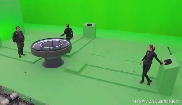 該MR體驗(yàn)一共有4個(gè)游戲類別,24個(gè)不同的的挑戰(zhàn),每場(chǎng)比賽持續(xù)90秒。可以看出,物理道具遍布整個(gè)綠幕工作間,來幫助參賽者完成任務(wù)。剩下的場(chǎng)景都由虛幻引擎4通過渲染實(shí)現(xiàn)。