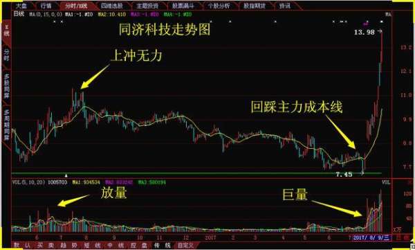 估計(jì)很多人看到走勢(shì)就已經(jīng)判斷出是什么股票了,希望個(gè)位不要透露,以免敖明落得個(gè)薦股的嫌疑,此股的走勢(shì)與剛才講解的贏時(shí)勝,同濟(jì)科技非常相似,三者都有消息的刺激,那此股后期會(huì)不會(huì)像后兩者一樣的上漲,我們還是先打個(gè)問號(hào)。此股的代碼我會(huì)提前發(fā)布于本人Q:1578217367 微信 gpam888,供懂我的人查閱。