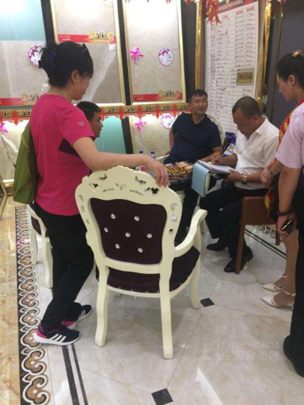 松原歐神諾掌舵人郝樹(shù)宏在展廳里和員工交流業(yè)務(wù)