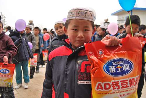 雅士利愛心小組給他們發(fā)豆奶粉