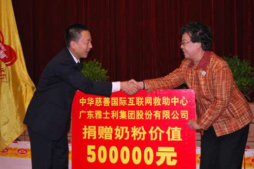 雅士利陜甘寧青經理陳衛(wèi)寧代表公司,將價值50萬元的奶粉捐贈給甘肅省