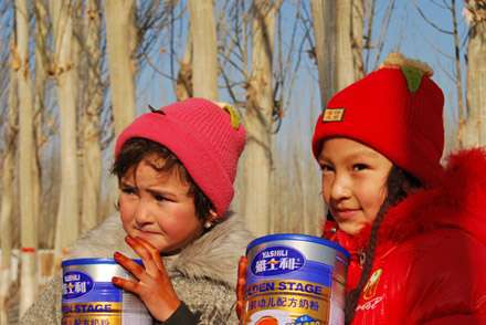 雅士利愛心小組向孩子們發(fā)放奶粉