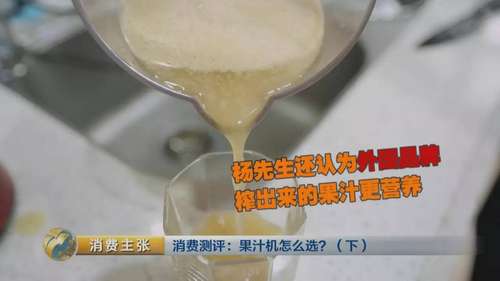 第二測,國外產(chǎn)品出汁率的貓膩想必大家已經(jīng)看明白。但一些不明真相的消費者,仍然會對國外品牌抱有偏愛,比如《消費主張》欄目里的這位楊先生,他認為:外國品牌榨出來的果汁更營養(yǎng)。