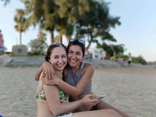 圖為俄羅斯籍留學(xué)生安娜(右一)跟朋友在廈門(mén)沙灘的合影。(新華社發(fā)圖片由被訪者提供)