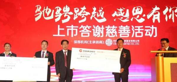 2016年通用上市答謝慈善活動中,周海江及父親周耀庭向無錫耀庭慈善基金會捐款1000萬