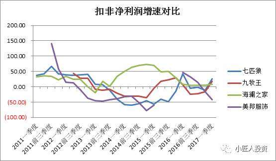 從扣非凈利潤(rùn)增速來(lái)看,經(jīng)過(guò)前幾年的連續(xù)下跌,近期除美邦服飾未有明顯好轉(zhuǎn)之外,七匹狼、九牧王和海瀾之家的凈利潤(rùn)增速開(kāi)始由負(fù)轉(zhuǎn)正。