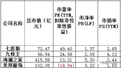 從估值情況來(lái)看,海瀾之家以415億元的市值力壓同類(lèi)男裝品牌,七匹狼市值最小,詳見(jiàn)下表。