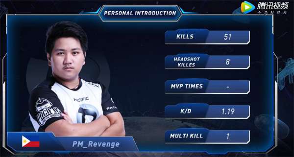 我們在整體看一下PM戰隊,正因為有Revenge的存在,PM居然可以靈活地使用我們中國的“傳統文化雙狙戰術”,Revenge的超強的偵查,破點,搜點能力讓PM打的有聲有色,從而帶動了整個戰隊的氣勢,每次打到僵局的時候總是Revenge打開局面,幫助隊伍獲得比分。而Revenge在黑色城鎮橋頭狙擊守點的過程,成為了他在本次CFGI中最精彩的場景,多次阻擊SV的5人抱團進攻,將這個點位守得固若金湯!如果PM的其他隊員的競技水平能跟Revenge相仿,那本屆CFGI的冠軍會不會落入菲律賓人之手也未可知。
