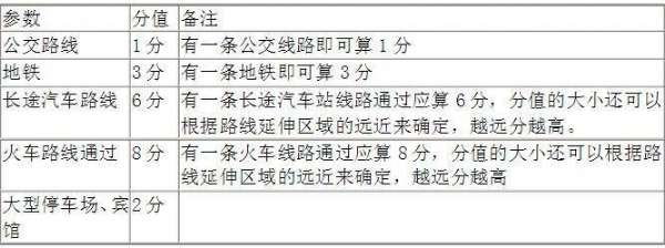 通過這項評估打分主要是看這個商圈輻射功能的大小,能否通過方便快捷的公路、鐵路及水路運輸,把周邊的購買力吸引過來,使商品實現(xiàn)跨市、跨區(qū)甚至跨省的大流通。我們給交通評估的總分值定為20分,那么在這個商圈內(nèi)有一條公交線路通過應(yīng)算1分,有一條地鐵線路通過應(yīng)算3分,有一條長途汽車線路通過應(yīng)算6分,有一條火車線路通過應(yīng)算8分,線路延伸的區(qū)域遠定的分值就越高。如在商圈的附近有大型停車場、賓館等應(yīng)算2分。總分:20分