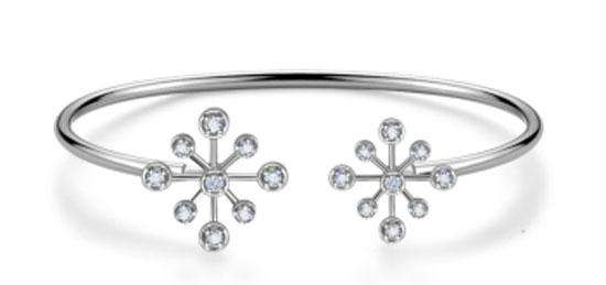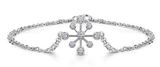《榮耀之星》套系鉆飾,包含:項(xiàng)鏈、戒指、耳飾、手鏈及手鐲各一款。該套系沿襲了《永恒之星》夢幻星光的創(chuàng)意,將柔美與堅(jiān)硬完美結(jié)合,于舉手投足間,盡情釋放耀眼光芒。造型立體精致、閃耀迷人。