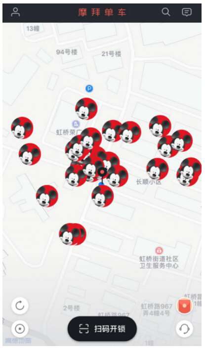隨著“米奇車”、“米妮車”的推出,在使用APP智能用車的同時,也和以往有了不同的改變,滿屏幕可愛俏皮的米老鼠頭像就代表著一輛輛定制版摩拜單車,既一目了然又賞心悅目。據悉,除了線下投放限定版單車外,摩拜單車APP內的車輛圖標也將在華東多個城市點亮為米奇米妮頭像,為用戶指明了單車所投放的地方,帶動用戶全城展開一場線上線下的奇妙相遇。