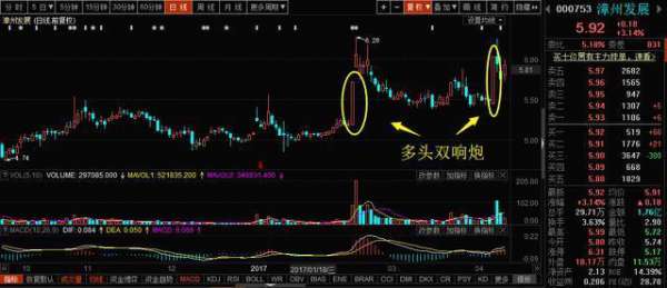 4,漲停雙響炮并不要求全部都是漲停板;只要是大陽線都是有效的;但是如果都是漲停板的話;后市爆發力度更強;上漲幅度更大。