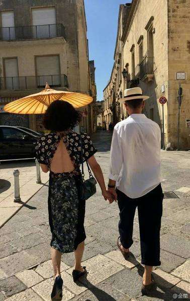 金星度假和洋老公牽手漫步 穿露背裝成熟性感