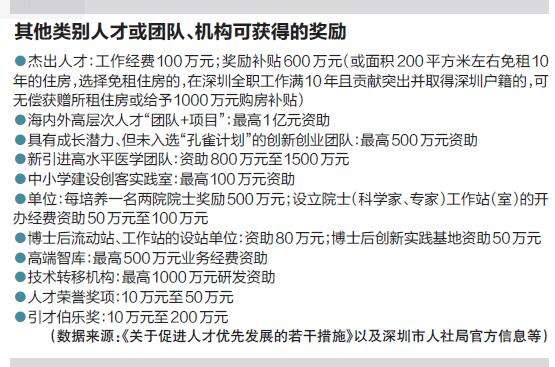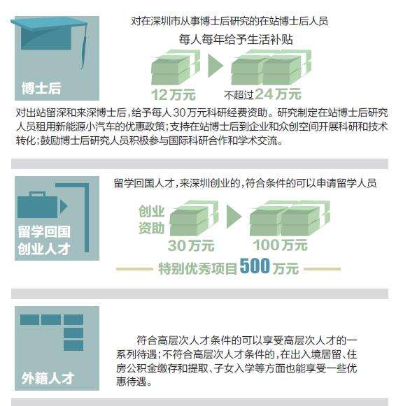 近日,深圳出臺(tái)了《關(guān)于促進(jìn)人才優(yōu)先發(fā)展的若干措施》,提出20個(gè)方面81條178個(gè)政策點(diǎn),在各類人才培養(yǎng)與引進(jìn)、人才安居保障、人才載體培養(yǎng)、招才引智工作機(jī)制、人才服務(wù)優(yōu)化等方面有較大突破。據(jù)官方信息顯示,每年深圳市財(cái)政用于人才工作的預(yù)算將達(dá)44億元,新增23億元,對(duì)于在深或有意入深的賢能來(lái)說(shuō),這無(wú)疑是個(gè)“大禮包”。今天,我們不妨一起拆開這個(gè)大禮包,看看有哪些福利。