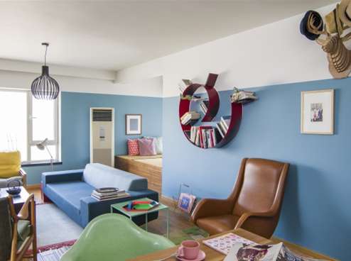 當(dāng)你一半顏色我一半顏色的客廳出現(xiàn)在他們眼中時(shí),他們會(huì)為這樣的協(xié)調(diào)雀躍不已,雖然涇渭分明,但仍然耳鬢廝磨、恩愛共生,這是年輕夫婦的相處之道——不傳統(tǒng),但充滿勃勃生機(jī)。