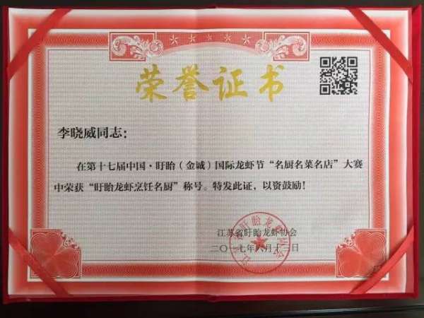 獲得了第十七屆中國·盱眙國際龍蝦節(jié)