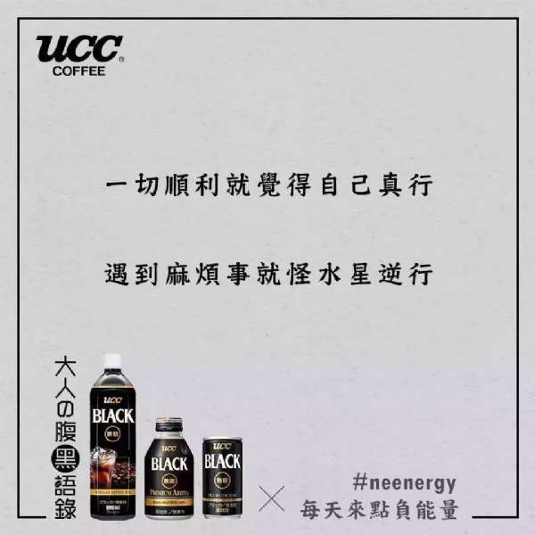 除了做咖啡、賣咖啡,UCC 也做了很多有趣的活動(dòng),例如和動(dòng)漫聯(lián)名,或者為旗下黑咖啡策劃「負(fù)能量」征集活動(dòng)。
