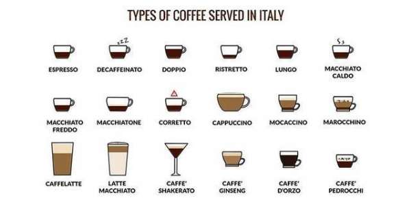 我們耳熟能詳?shù)哪切┛Х让Q如卡布奇諾(Cappuccino)、瑪琪雅朵(Macchiato)、拿鐵(latte)都來(lái)自意大利。