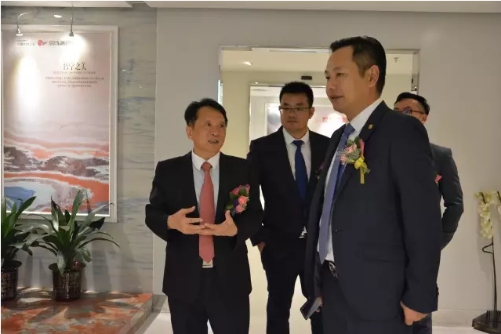 何新明董事長帶領(lǐng)嘉賓參觀東鵬展廳
