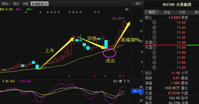 近期的短線牛股天原集團(tuán)就是用這種選股思路選出的,前期上升拉漲之后,開始回檔下跌,回踩至支撐點(diǎn)位選出并發(fā)布在專欄中,截止目前5個交易日的時間30個點(diǎn)的漲幅。