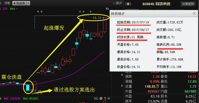 同濟(jì)科技是志文在7月18在朋友圈中進(jìn)行了講解,我們可以看到該股之前一路橫盤(pán)震蕩,在講解當(dāng)天股價(jià)出現(xiàn)回踩,走出穩(wěn)信號(hào),而且主力資金持續(xù)流入量能放大,截止目前21個(gè)周期,漲幅也是達(dá)到了88.29%,如果,你在7月18號(hào)有幸看到本人的朋友圈,相信了本人,那么這88個(gè)點(diǎn)的盈利是不是輕輕松松能把握在手?