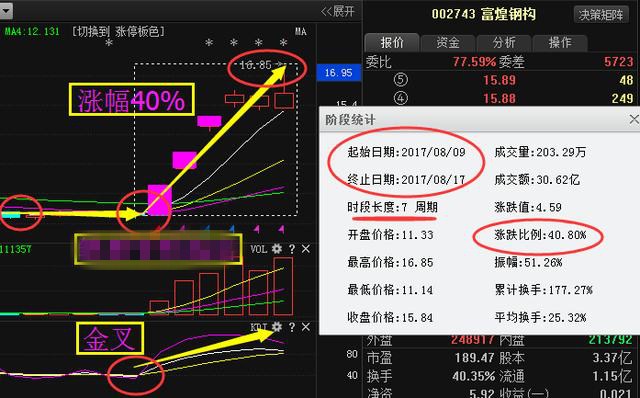 富煌鋼構(gòu)前期股價(jià)跟同濟(jì)科技有點(diǎn)相似,股價(jià)沒(méi)怎么上漲,一路橫盤(pán)震蕩,但是看到主力卻在偷偷吸籌,在8月9號(hào)的時(shí)候,看到主力搶籌完畢,趨勢(shì)出現(xiàn)金叉,當(dāng)時(shí)就在朋友圈中發(fā)文講解,之后連續(xù)出現(xiàn)了3個(gè)漲停,截止目前7個(gè)交易日漲幅超過(guò)40%。那么這里也是恭喜那些抓住了這2只股票的朋友,成功把握了其中的利潤(rùn)。
