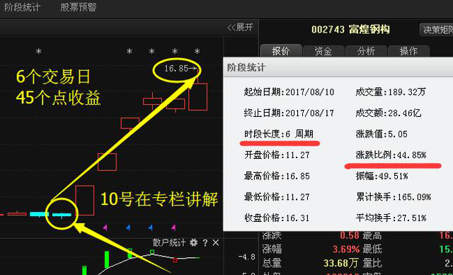 富煌鋼構近期表現非常強勢,同樣也是在10號用低位選股法給大家講解,我們可以看到,當天出現十字星企穩信號,量能放大,KDJ金叉,6個交易日45個點的收益,也就是說只要你在8月10號有看到,并且相信筆者介入了富煌鋼構,那么截止目前短短6個周期的時間,45%的收益是不是到手了呢?
