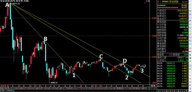5178下跌以來,深指可以畫出三條明顯的下降趨勢線,突破后都出現(xiàn)了回踩后的向上。現(xiàn)在正好是第三條趨勢被突破且回踩后的上漲中。
