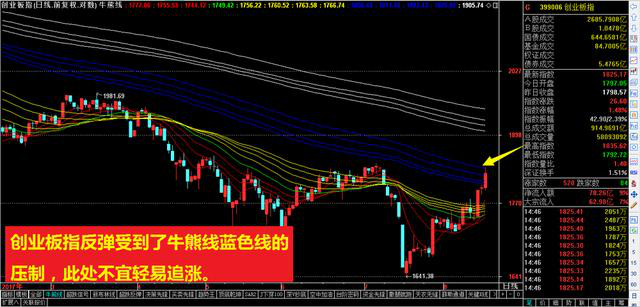 創(chuàng)業(yè)板指等板塊現(xiàn)在受到了牛熊線白色線的壓制,次新股則是受到了牛熊線黃色線的壓制,一旦出現(xiàn)無力突破的明顯特征,就要及時(shí)把握高拋機(jī)會。