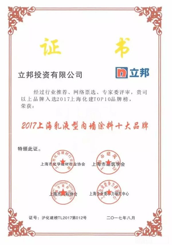 在剛剛落下帷幕的2017上海市金楹獎(jiǎng)暨化學(xué)建材TOP10頒獎(jiǎng)儀式上,憑借旗下優(yōu)秀的建筑涂料,立邦榮獲2017上海兒童水性內(nèi)墻涂料十大品牌和乳液型內(nèi)墻涂料十大品牌。