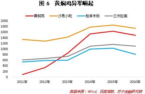 可以發(fā)現(xiàn),黃燜雞是四大金剛里增長趨勢最明顯的!
