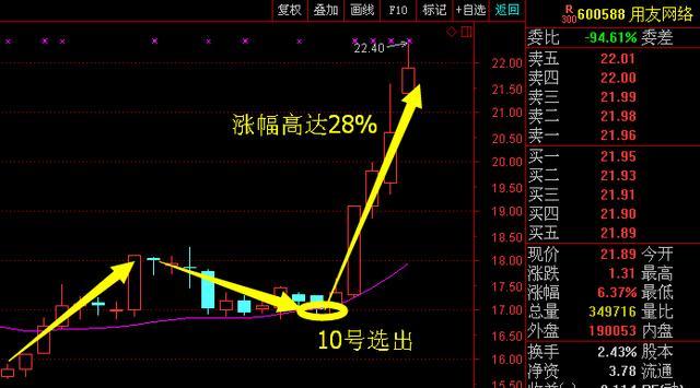 其實(shí)選股就是這么簡(jiǎn)單,選熱門板塊的龍頭股,再結(jié)合上升回踩,能夠選出的牛股有很多。如【用友網(wǎng)絡(luò)】是10號(hào)在專欄選出,漲幅也不低了。