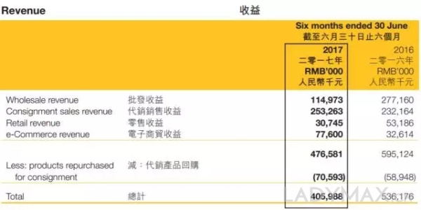 圖為卡賓服飾上半財(cái)年各渠道主要業(yè)績(jī)數(shù)據(jù)