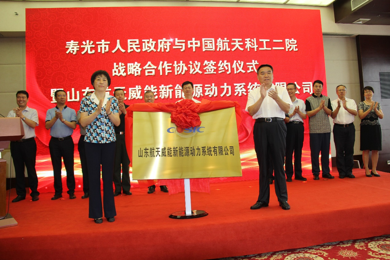會上,壽光市朱蘭璽書記、二院馬杰書記、火箭軍裝備研究院肖龍旭總工程師先后致辭,二院206所張亞林副所長(航天威能公司董事長)代表新公司進行表態(tài)發(fā)言。隨后,壽光市趙緒春市長同二院劉浩副院長簽署戰(zhàn)略合作協(xié)議。最后,濰坊市鄒慶忠常務副市長與二院馬杰書記為航天威能公司揭牌。