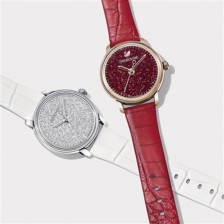 \u00A0\u00A0\u00A0\u00A0璀璨悅目的Crystalline\u00A0Hours\u00A0Quartz,以2016年登場的機械腕表為藍(lán)本,通過現(xiàn)代手法來詮釋40年代的設(shè)計風(fēng)格,盡顯不退流行的典雅韻味。鑲有約2000顆仿水晶的造型,閃耀著施華洛世奇的獨特光彩,亦是一款兼具腕表功能的搶眼配飾。有多種迷人色彩以供挑選,包括鮮紅色、白色和黑色,以及黑色搭配玫瑰金色。而品牌獨有的Crystalline技術(shù),同時為簡約自然的Crystalline\u00A0Oval,以及搭配真皮表帶或手鐲設(shè)計的Crystalline\u00A0Pure增添時尚亮點。