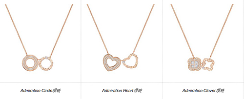 別致精巧、無(wú)限閃耀的Admiration系列,以暗藏的話(huà)語(yǔ)為你傳遞無(wú)聲的愛(ài)意:Circle鏈墜所刻You are my sunshine表達(dá)「陽(yáng)光如你,閃耀我心」;Heart鏈墜寫(xiě)有Bored without you是「愛(ài)要有你才精彩」;而Clover鏈墜向全世界宣示,「遇到你,是我最大的確幸」,Lucky in love。