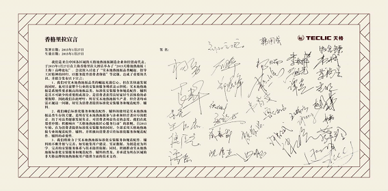 2015年1月,天格于上海發(fā)布《香格里拉宣言》,呼吁實(shí)木地?zé)岬匕鍏⑴c品牌一起行動,切實(shí)落實(shí)標(biāo)準(zhǔn)化服務(wù)和規(guī)范配件、輔料的全面使用,共同推動品類進(jìn)步
