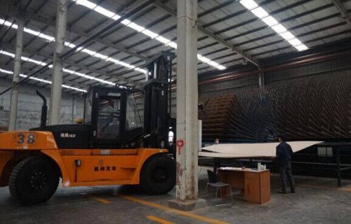 隨后大家一行來到了地板生產(chǎn)車間,在這里,一塊塊密度板華麗的蛻變成一張張光鮮亮麗的木地板。經(jīng)過修邊、浸漬膠膜紙、鋪紙、熱壓、掛鞭、長邊銑削等幾十道嚴(yán)謹(jǐn)工序后,各種花色工藝的木地板就出爐了。這還不算完,一塊合格的地板還要在“地板塔”經(jīng)過20天的恒溫晾曬才能裝箱入庫,并推出面世。