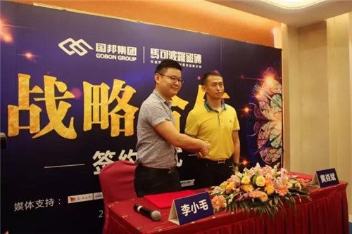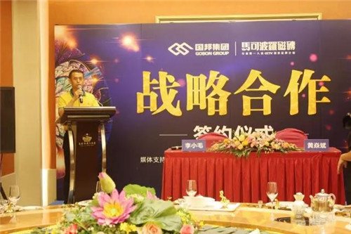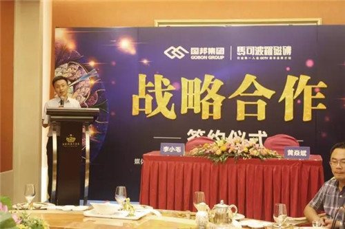2017年8月22日,安徽國邦集團(tuán)與馬可波羅瓷磚全面戰(zhàn)略合作簽約儀式在合肥白金漢爵大酒店隆重舉行。雙方同意在賣場外拓、集團(tuán)采購以及營銷互助三大方面加強(qiáng)合作。宣布雙方達(dá)成覆蓋式進(jìn)店及全面營銷的戰(zhàn)略合作。