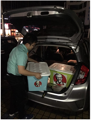 為了快速恢復(fù)城市秩序,臺(tái)風(fēng)過(guò)后大批搶通人員加班加點(diǎn)地奮戰(zhàn)在受阻路面上,了解到該情況后,珠海肯德基連夜發(fā)起為搶修人員送餐的行動(dòng)。在克服了道路交通阻塞、水源供應(yīng)不足、大批量緊急制作的時(shí)間壓力等重重困難后,200多份熱氣騰騰的肯德基美食在當(dāng)晚23:30至凌晨2:00間,先后送到了各搶通道路的交警、武警、園林、城管、志愿者等現(xiàn)場(chǎng)工作人員手中。“送餐時(shí),風(fēng)雨交加,我們?nèi)矶紳裢噶耍吹竭B續(xù)十幾個(gè)小時(shí)高強(qiáng)度搶險(xiǎn)的工作人員能吃到我們的餐點(diǎn),補(bǔ)充能量,我們心里特別高興。”珠海肯德基現(xiàn)場(chǎng)送餐的工作人員向記者表示。